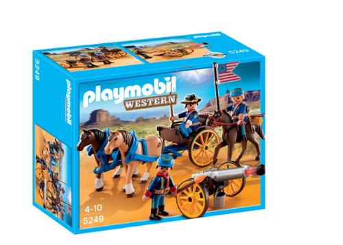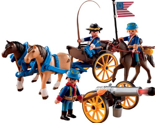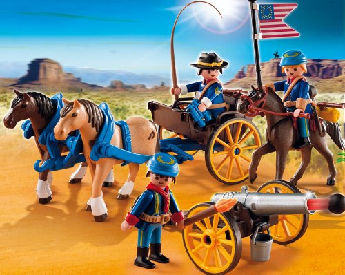 -. Feature : Travel to the local fort on the Horse-Drawn Carriage with Cavalry Rider / Playmobil is the largest toy manufacturer in Germany / Encourages children to explore and learn while having fun / Figures can bend, sit, stand and turn their heads / Includes three figures, three horses, carriage with moveable wheels, functioning cannon, and other accessories
