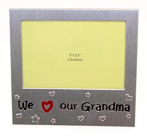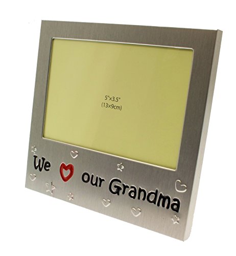 We Love Our Grandma - Photo Picture Frame Gift - Will take a photo of 5 x 3.5 Inches (13 x 9 cm) - Brushed Aluminium Satin Silver Color.