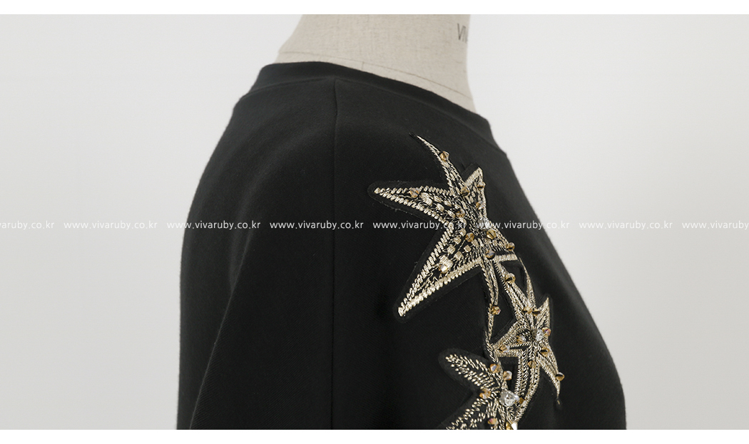 ショルダーにゴールド光別パッチとビズに華やかさを加え、