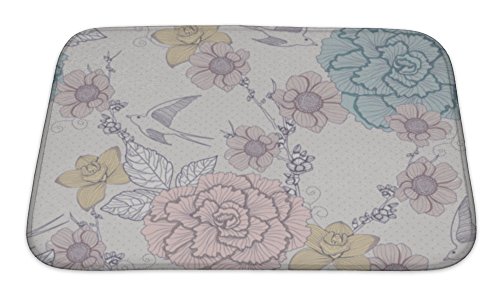 Gear New No Slip Microfiber Memory Foam Floral Pattern with Flowers & Birds Bath Rug Mat, 24" X 17"