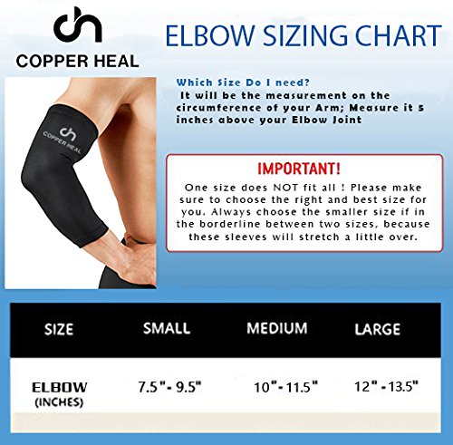 COPPER HEAL Elbow Compression Sleeve - BEST Medical Recovery Elbow Brace GUARANTEED with Highest Copper Infused Content - Support Stiff...