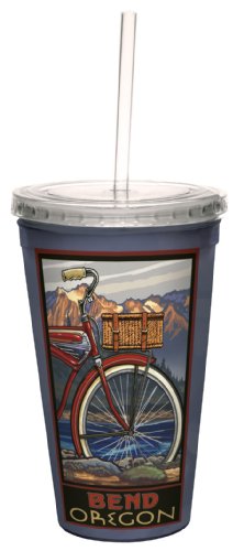 Tree-Free Greetings cc33304 Vintage Bend Oregon Bicycle by Paul A. Lanquist Artful Traveler Double-Walled Cool Cup with Reusable Straw, 16-Ounce