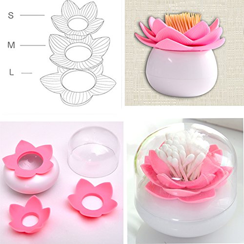 Q-tips Holder Cotton Ball/Swab Organizer Lotus Shape Swab Cosmetic Storage &Toothpick Holder (pink)