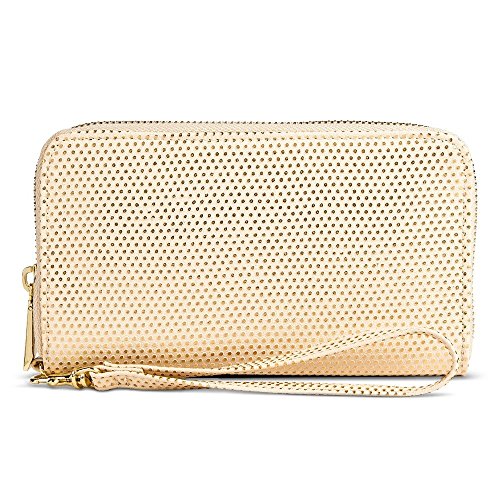 -. Title : Women's Zip Around Cell Phone Wallet with Wristlet in Gold