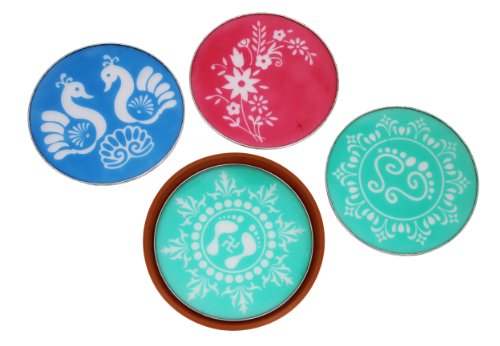 Designer Stencil Floor Art Décor Set of 4 with Traditional Indian Motifs & Patterns Festive Party Decorations