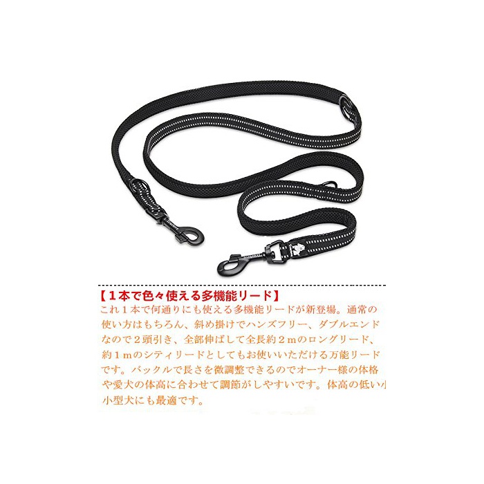 【1개에 여러가지 쓸만한 다기능 리드】숄더 리드로서,보통 리드로서,폴금지로서,2 두용리드로서.대형견이나 소형견,주인씨의 신장 등에 대응할 수 있는 바와 같이(하도록) 길이 조절할 수 있도록 됩니다.