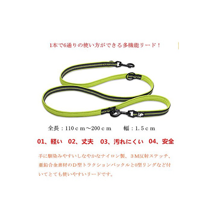 원본상품명:cocomall 犬 犬用リ?ド 2頭引き リ?ド 1本で色?使える多機能リ?ド 小型、中型、大型犬用リ?ド 訓練リ?ド ロングリ?ド ペット用品 ハ?ネス 3M反射材料 ナイロン製 通?性