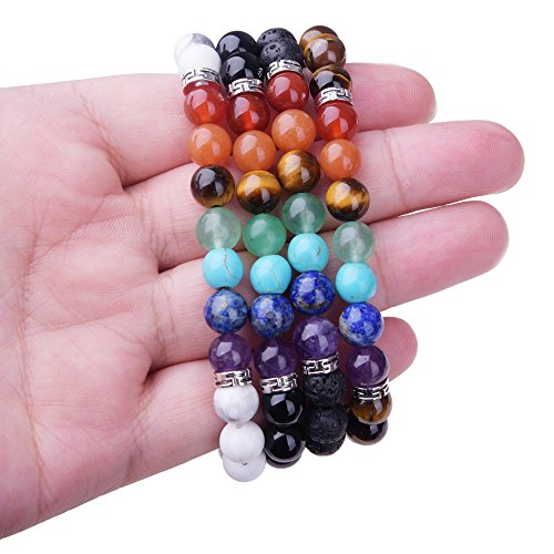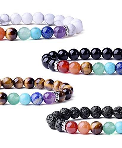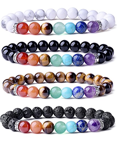 Come With 4 Pieces Chakra Bracelets a Set,Included Beads Material:Tiger Eye/Lava Stone/Howlite,Black Agate,Most Economical Price,Multiple Color,Perfect Suit for Your Daily Wearing Needs