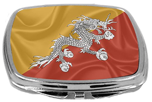 Rikki Knight Flag Design Compact Mirror, Bhutan, 3 Ounce