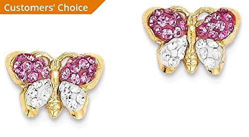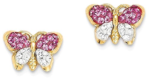 ICECARATS DESIGNER JEWELRY 14K YELLOW GOLD PINK/WHITE CRYSTAL BUTTERFLY POST STUD BALL BUTTON STUD EARRINGS