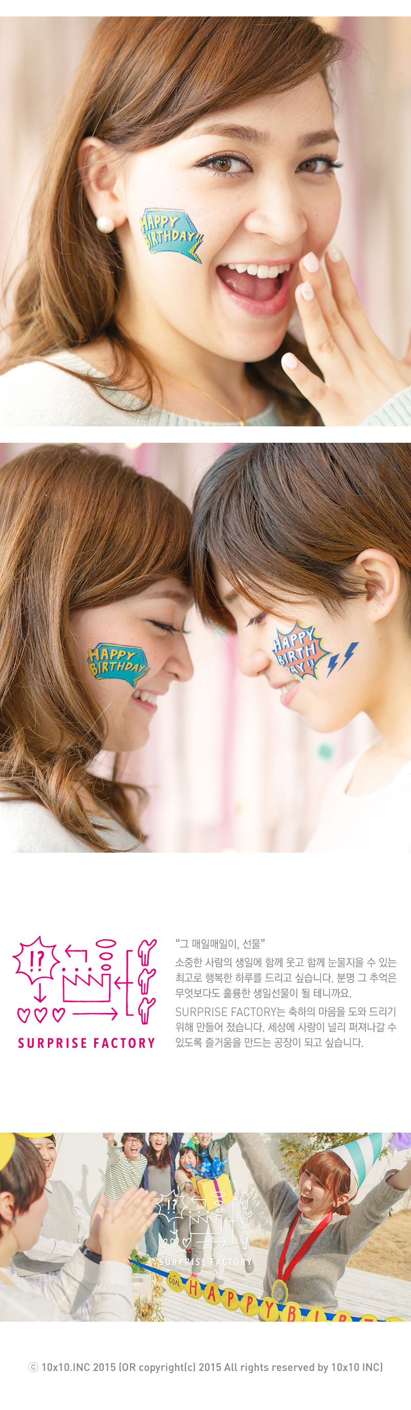 | - 사용법 1. 붙이고 싶은 부분을 깨끗하게 한 뒤 시트를 부착합니다. 2. 티슈나 타올 등에 물을 적셔 시트 위를 눌러 충분히 적십니다. 3. 20~30 초 후 천천히 필름을 제거하십시오. 4. 1 분 후 표면의 가장자리를 가볍게 물로 씻어주십시오. 5. 그대로 주위가 투명해질 때까지 잘 말립니다. * 제거 시에는 접착 테이프를 위에 붙인 뒤 함께 떼거나 클렌징 크림, 소독 알코올로 닦아냅니다. - 주의사항 피부가 약한 사람이나 알레르기가 있는 사람은 사용하지 마십시오. 특히 눈 근처 부위나 상처 위에는 절대로 붙이지 마십시오. 피부에 이상이 발견 될 때 또는 피부에 맞지 않을 때는 사용하지 마십시오. 오일이나 크림 등을 쓰면 벗겨 질 수 있으므로 주의하시기 바랍니다. 마찰 등에 때로는 의류 변색 될 수 있으므로 주의하시기 바랍니다. * 유아의 사용은 절대 삼가십시오. 또한 실수로 삼키거나 하지 않도록 주의하시기 바랍니다. |