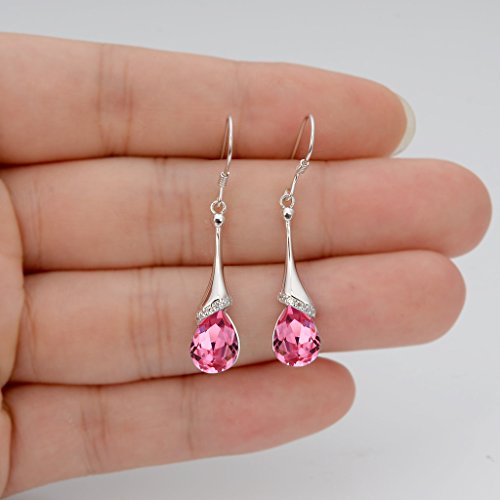This pair of earrings are made with sparkling pink crystals which supplied from Swarovski®, and the earrings are designed and produced by EVER FAITH®. They will be an ideal gift for your girlfriend, wife, fiancee, daughter, mother, your special someone, or just yourself.