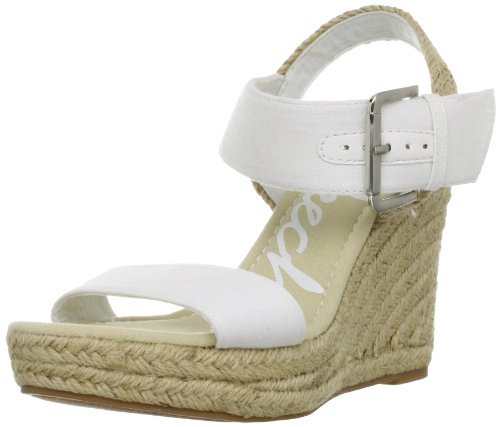 Adjustable buckle at ankle for a secure fit. Open toe and heel. Smooth fabric lining. Lightly cushioned footbed. Platform wedge with braided raffia covering. Textured synthetic outsole. Imported.