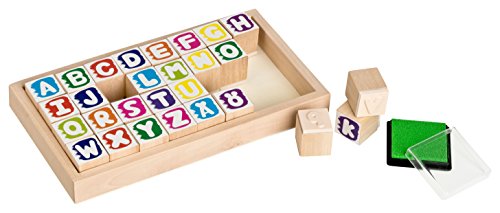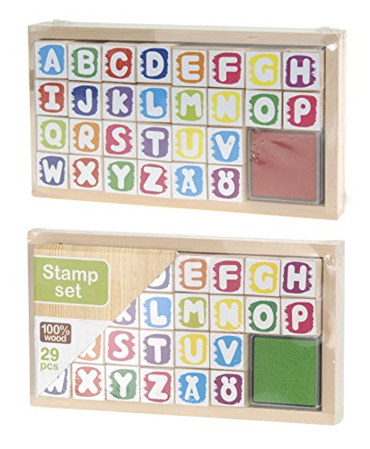 Aminata Bunte Stempel Kinder Buchstaben aus Holz 29-teiliges Set mit Stempelkissen in Holzkiste Alphabet mit Umlauten ABC Namen Lehrer Schule Kindergarten hochwertig Stempelsortiment mit A