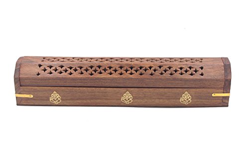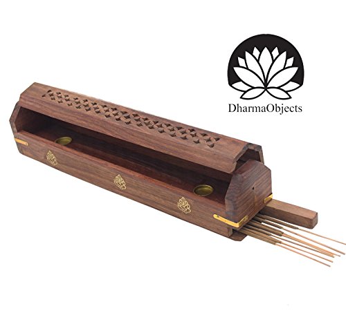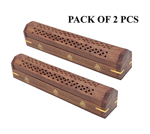 DharmaObjects 2 Pack Wooden Coffin Incense Burner with Ganesh Brass Inlays and Storage Compartment - 12X2X2 Inches (Ganesh)