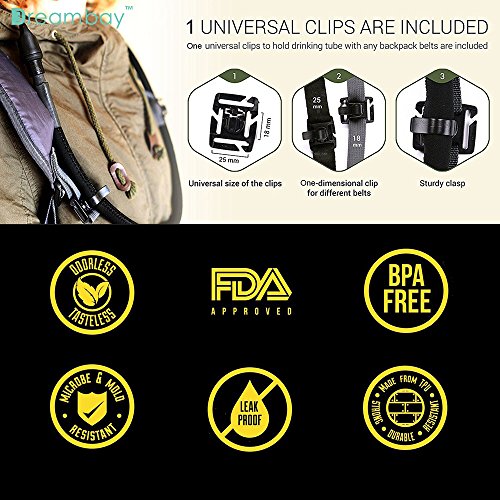 DreamBay Hydration Bladder 85 oz / 2.5 Liter with Clips to Hold Drinking Tube & Tube protection bandage - Suitable for All kinds of Hydration Pack - Water Storage Bladder Bag with Drinking Tube Trap