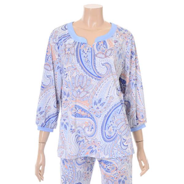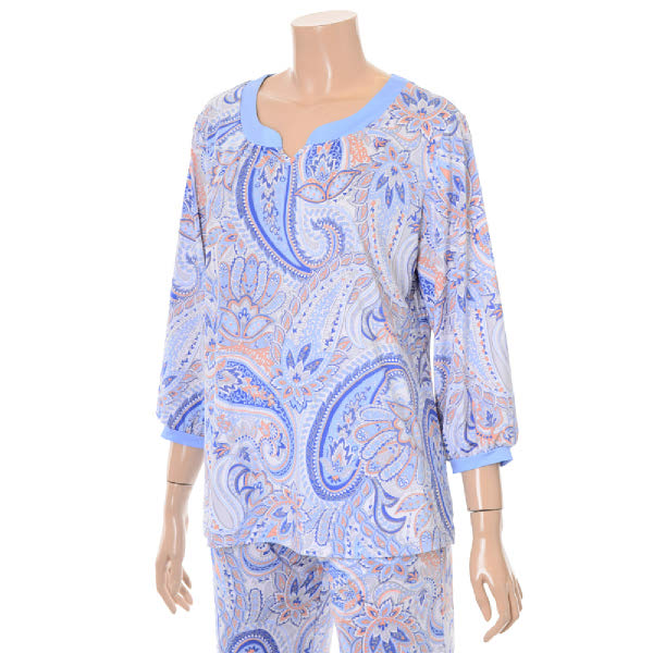 페이즐리 기하학 무늬의 상하 이지웨어로 기존에 비해 한사이즈 더 출시되어 상의는 100까지 하의는 105사이즈 까지 운영하는제품으로 빅 사이즈를 찾는 고객들에게도 판매가능합니다