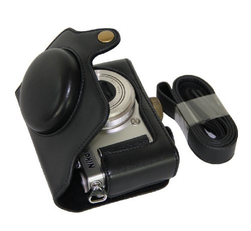 MegaGear Schwarz Leder Kamera tasche Set fur Nikon COOLPIX A mit 28mm Objektiv Tasche Etui