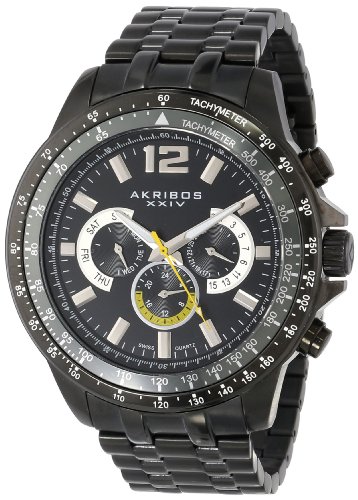 -. Title : Akribos XXIV Men's AK653BK Grandiose Swiss Multifunction Black Dial Black Stainless Steel Bracelet Watch