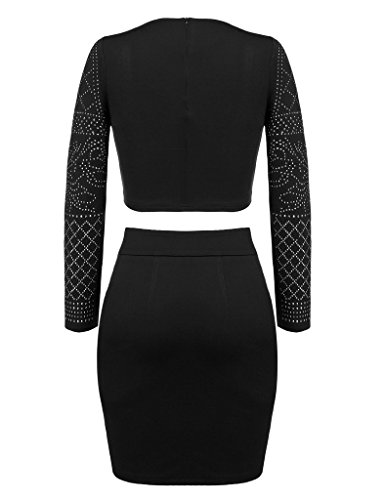 2 pieces set: long sleeve crop top, midi slim fit skirt