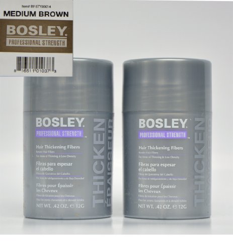 Bosley Hair Thickening Fibers Keratin Hair Fibers .42 oz (Medium Brown) 2 Pack