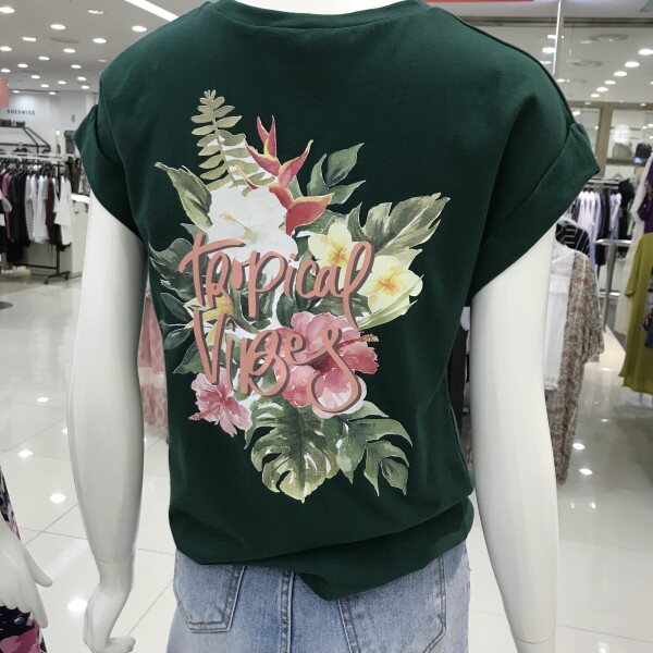 뒷부분 프린트장식이 포인트인기본라운드티셔츠입니다롤업소매로 캐쥬얼하고 편하게입기좋아요