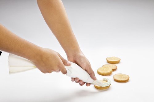 - Feature : Whoopee pie 2-piece set includes two nonstick pans (top and bottom) and clips to hold together during baking; plus a 4.75" x 3" scraper / This whoopee pie pan set makes 12 uniform cookies for the traditional sandwich treat / Nonstick coated carbon steel is PFOA free; provides easy release and clean-up / Features excellent heat conduction; bakes uniformly; heat resistant up to 450 Degree / Made in Germany; hand wash recommended