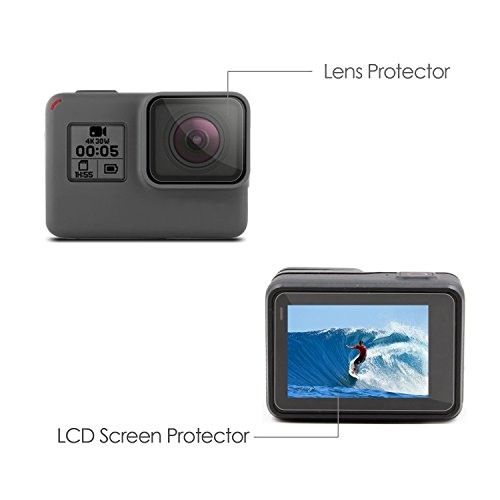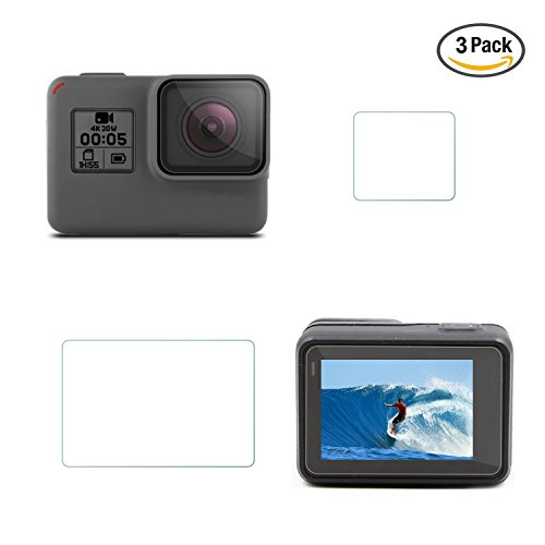 Rhodesy Packung aus 3 LCD Displayschutzfolie + Objektivschutzer fur GoPro Hero 6 Hero 5 Action Kamera