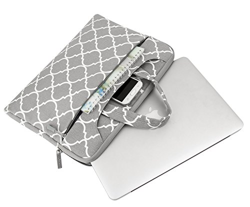 Outer canvas fabric of the case is printed with Quatrefoil / Moroccan Trellis style patterns that enable you to carry your MacBook / laptop / notebook / Ultrabook computer in a uniquely sleek style.