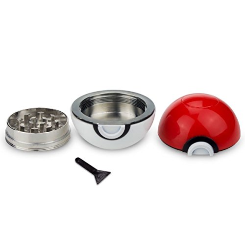 Pokemon Pokeball Grinder, Pokemon Poke-Ball 52mm / 2" Herb Spice 3-Piece Grinder w/ Gift Box and FREE Pollen Scraper