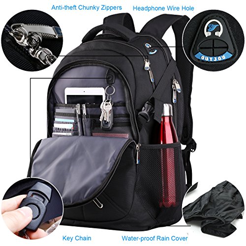 【Drawbar Sleeve】 on the back section to slip backpack onto luggage pull- along handle so as to carry around conveniently. 【Assorting pockets】provided for water bottle,umbrella,cards, passport, pens, phones, keys, iPad, Notebook, laptop, clothes, books and more.
