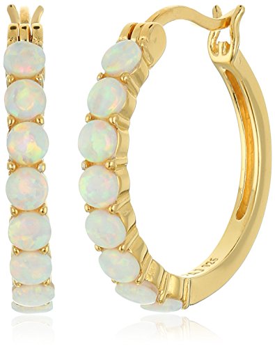 Dainty 18k yellow gold plated sterling silver hoop earrings adorned with created opal stones