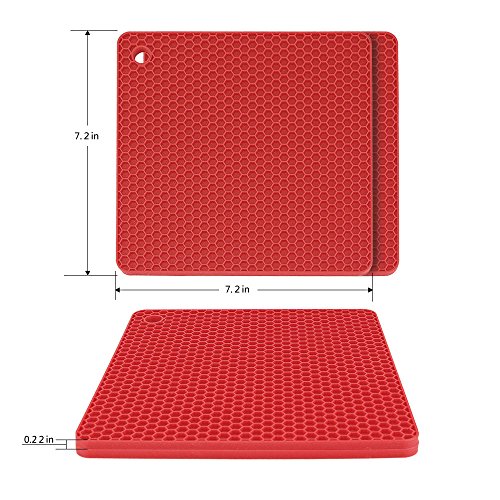 HsuiBhs Silicone Pot Holders 2 Pack, Square Silicone Hot Pads, Heat Insulation Table Mats For Family Use - HB-GJD/Dark red/2 Pcs