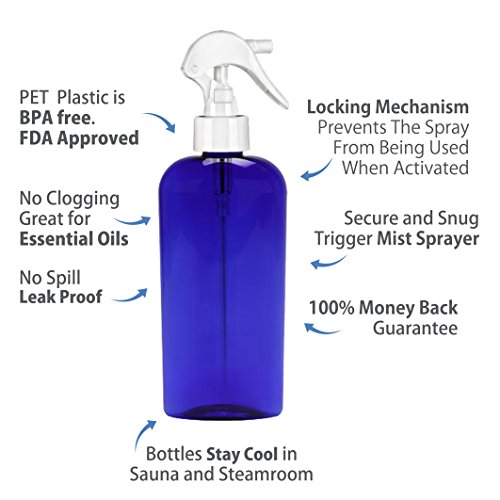 MoYo Natural Labs Large Mist Spray Bottle Oval Cobalt Blue with Trigger 8 oz spray mist bottle with trigger 2 Pack Cobalt Blue Refillable Spray Mist Bottle