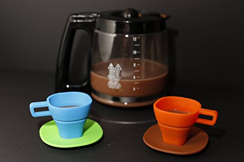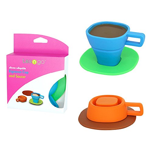 Lexngo Silicone Espresso Cups and Saucers Set 100% Food Grade Collapsible and Foldable Silicone, BPA Free, Perfect for Outdoor Camping and Home Use