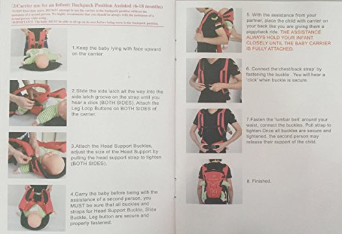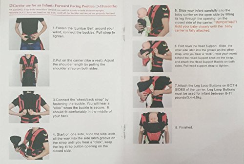 Attention: 1.Always check to ensure that all the buckles,snaps,straps and adjustments are secure befor each use,never use this baby carrier is damaged.