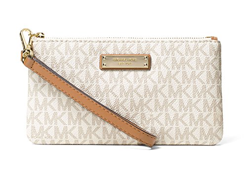 Product DescriptionShowcasing a sleek, versatile silhouette, this zip wristlet by MICHAEL Michael Kors features a signature print for instant sophistication.0