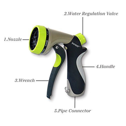 -. Title : Innoo Tech Garden Hose Nozzle 8 Spray Modes High-Pressure Hand Sprayer for Car Washing, Dog Washing, Flowers, Gardening