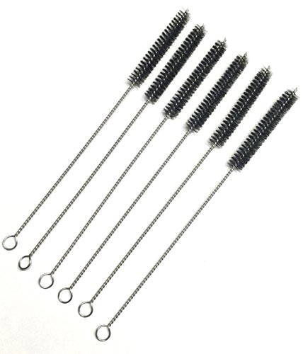 Straw Cleaner Brushes, Larger size, Black nylon bristles w/ stainless steel handle - 6 Piece Value Pack - 3/8"(10mm) round head x 8"(200mm) long - Koem