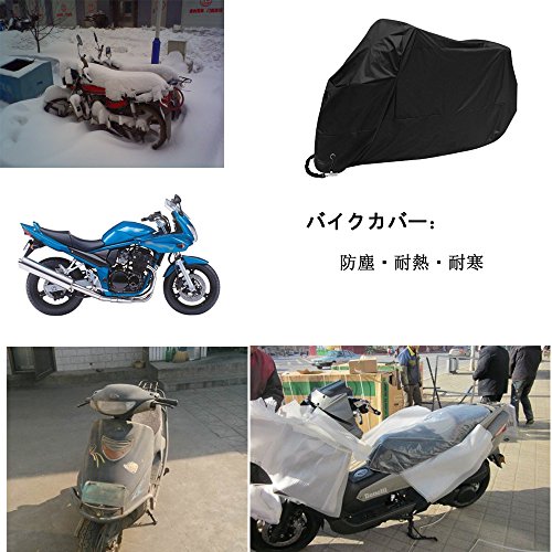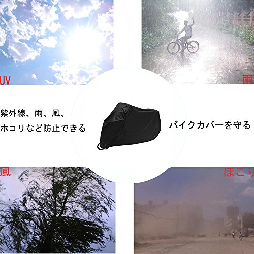 【防水・耐熱・耐寒・ゴミ】:梅雨の日、雨水防止ができます。高温天気に、耐熱性が高くて、バイクを日焼けさせません、バイクカバー劣化を避けるもできます。雪の日、バイクカバーがいつものように柔らかくて、硬くなりません、耐寒性が高いです。また、ゴミ、ほこり、摩擦から大切なバイクを守ります。