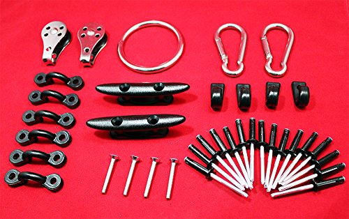 Two Stainless Anchor Pulleys Two 3" Anchor Cleats w/ Matching Screws One Stainless Ring Two Stainless Clips Six Nylon Pad Eyes w/ anodized pop rivets Four J Hooks w/ anodized pop rivets