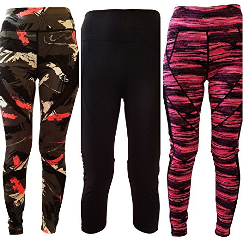 -. Title : 3 Pack Of Yoga Pants With Black/Grey Camo, Black Mesh CaP.R.I, Black Pink Camo