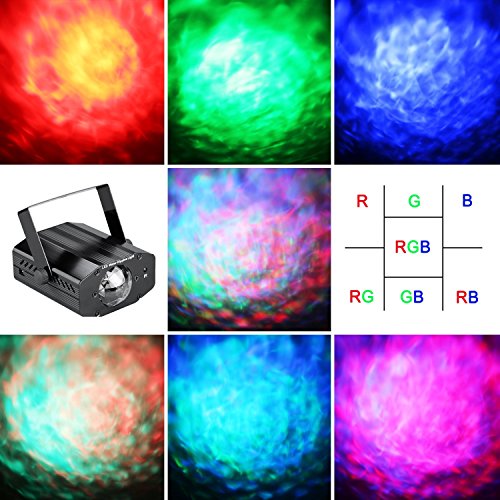 RGB COLOR: 7 Colors ocean wave party lights with remote control.Easy to choose single colors or color combinations by the sensitivity remote.Throws the colore onto a wall or ceiling with shimmering,dancing effect that looks like light reflected off rippling water.