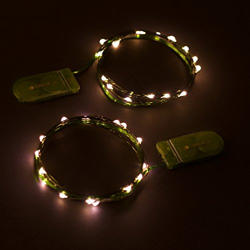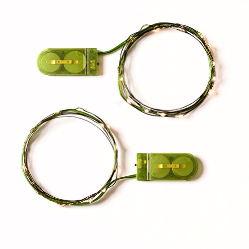 Rtgs 2 Sets of Micro LED 15 Super Bright Warm White Color Lights Battery Operated on 6 Ft Long Green Color Ultra Thin String Wire [NEWEST VERSION] + 100% RTGS Products Satisfaction Guarantee