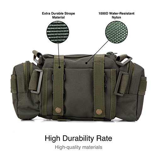 -. Feature : Roomy Main Compartment / Scratch Proof and Water Resistant / Durable Polyester Material / High Quality Zippers / MIL-SPEC Molle Compatible