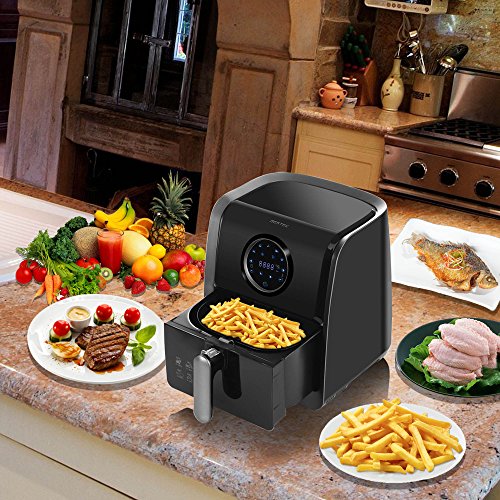 Multi-Function : 3.2L Capacity, 60 Mins Timer & Adjustable Temperature Control from 140°F - 392°F allows for a variety of ingredients from crispy fries to juicy wings.