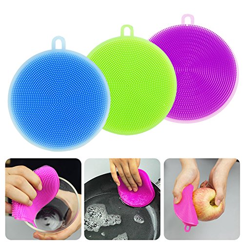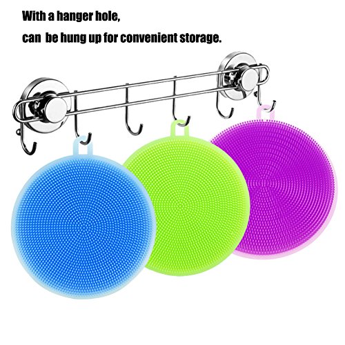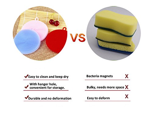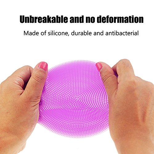 SECOWEL 3 Pcs Silicone Dish Scrubber - Antibacterial Brush Sponge Scrubber for Kitchen, Makeup Brush, Body, Face, Fruit and Vegetable Washing