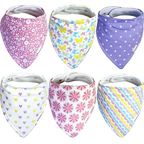 Baby Bandana Drool Bibs - 6 Pack Gift Set for Girls, Organic Cotton, 3 Snaps To Fit All Neck Sizes, Soft, Extra Absorbent, Easy To Clean, Perfect Baby Shower...