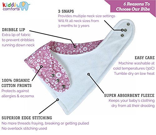💚 100% MONEY BACK GUARANTEE - Our customers are extremely important so if for any reason you aren't satisfied with our baby bibs, let us know and we'll refund your money. However, we're quite sure you'll love our baby drool bibs for their effectiveness at keeping your baby's clothing dry from their drools, dribbles & spit ups and their softness against your baby's delicate skin. And because our bandana bibs use 100% Organic Cotton, you'll be protecting your baby from allergies & eczema.