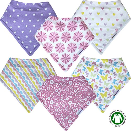 💚 SUPER ABSORBENT & PROTECTS YOUR BABY GIRL FROM ALLERGIES AND RASHES - The fronts of our bandana bibs are made using 100% GOTS Certified Organic Cotton. This makes our baby bandana bibs absorbent, softer, more breathable and much less likely to trigger allergies and eczema since there are no harmful chemicals used in the growing of the cotton.